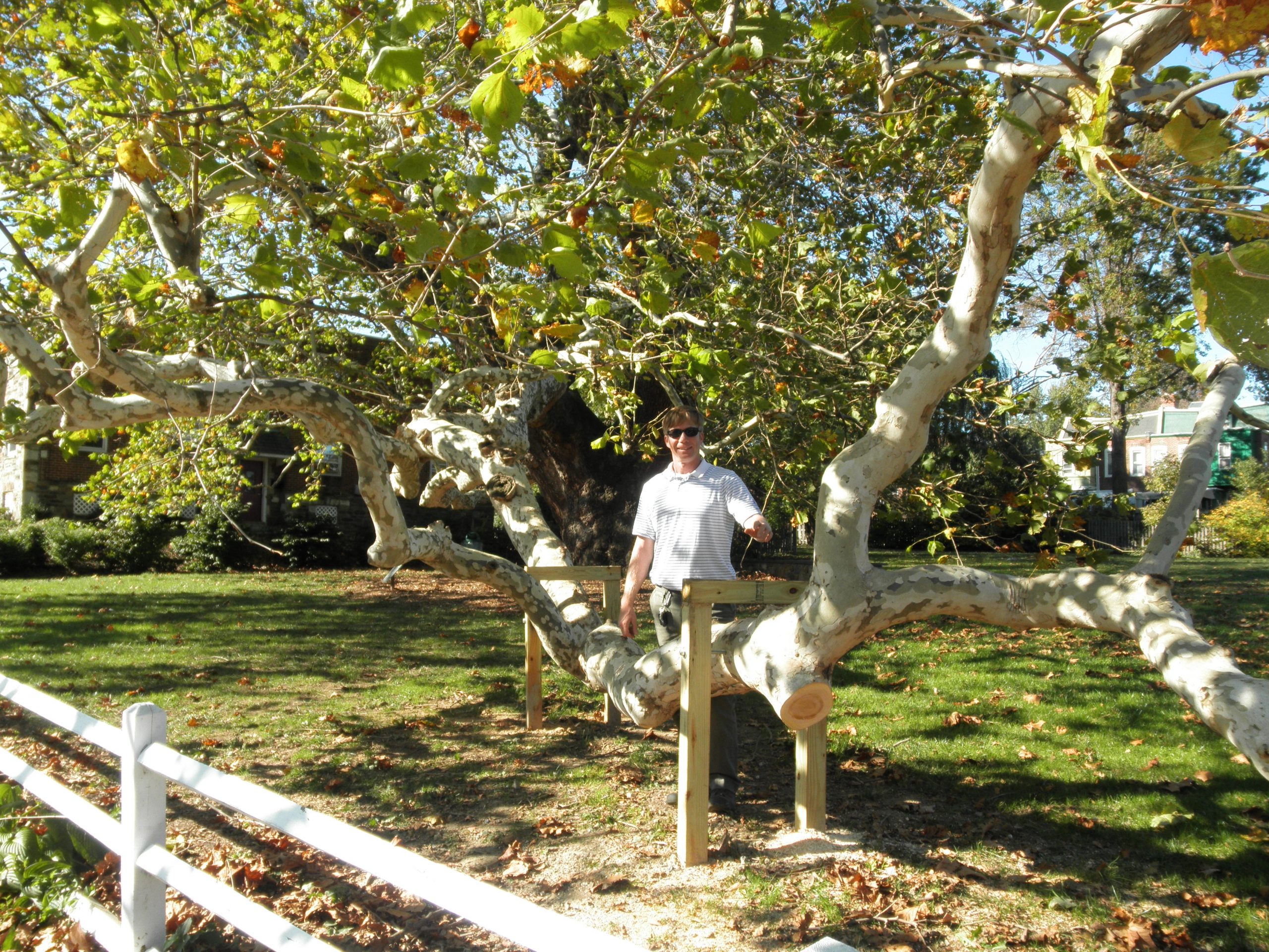 Bartlett Tree Experts replaced the supporting props, pruned, fertilized, and spread woodchip mulch to help improve the overall health of the sycamore tree. Bartlett Tree Experts with the help of Erica Sollberger and the Borough of Lansdowne, will continue to monitor and maintain this historical tree.